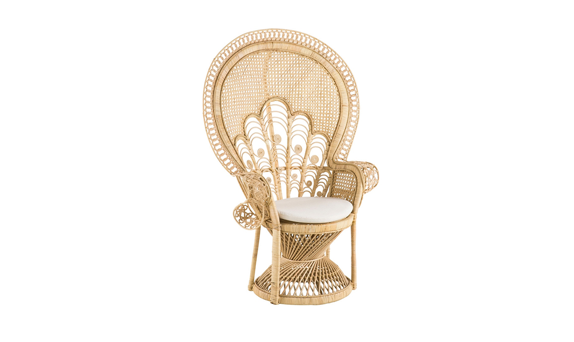 Attualmente, tra i modelli più di tendenza ci sono la poltrona Peacock vintage di Maisons du Monde, realizzata in rattan e il modello Manille, ancora più estroso. Di ispirazione 'sixties' la poltrona C-C pavone di Bizzotto Homemotion anche nella versione in rattan bianco.
