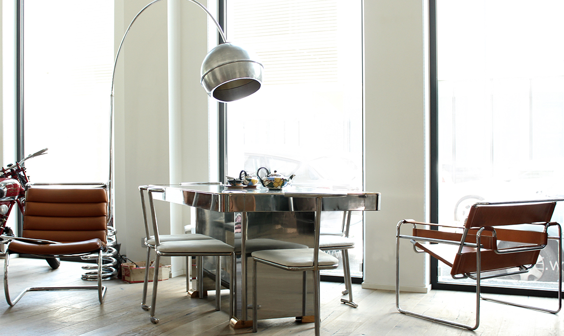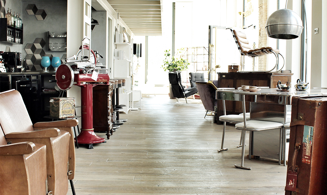 Mix tra pezzi di antiquariato del 900 e vintage dal sapore industrial, accompagnati da motori a due ruote e orologi d’epoca. Uno spazio che ricorda un elegante loft: soffitti altissimi, ampie vetrate e condotti dell’aria a vista. Nel contesto moderno dello showroom vedrete ambientazioni che riproducono fedelmente gli ambienti della casa con mobili antichi, oggetti d’epoca e opere d’arte. Una curiosità? All’interno di questo spazio trova posto anche un orologiaio pronto a riparare vecchi orologi malfunzionanti e a ridar loro una nuova vita!
