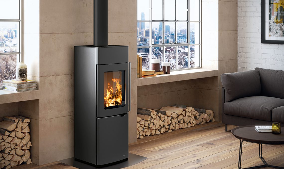 A legna. Riscalda fino a 215 mc la stufa canalizzabile a legna E929 T, rivestita in maiolica nel colore Ardesia. Dotata del focolare ermetico a controllo elettronico Burn Control System, consente di prelevare l’aria comburente direttamente dall’esterno per assicurare una combustione perfetta, rendimenti superiori e un risparmio di combustibile fino al 50% [Piazzetta, cm 58x58x153 cm].