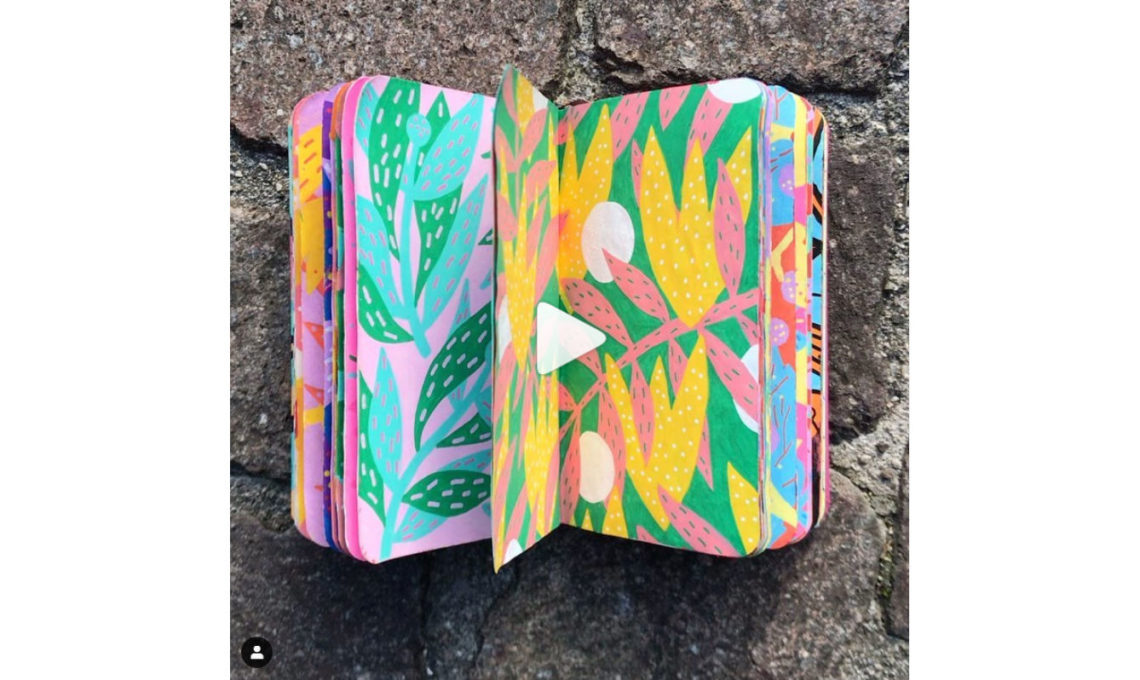 Polina disegna, instancabilmente, su blocchi e quaderni. Sono sfondi a motivi floreali e disegni grafici astratti, coloratissimi, che poi diventeranno tessuti, articoli di carta e packaging, maglie artistiche, copertine di libri... qualsiasi cosa. Di grande ispirazione. @oshupatterns
