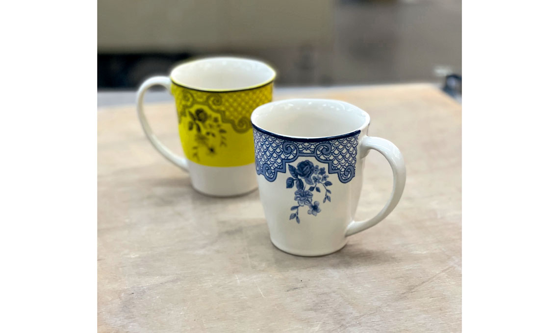 Non sono esattamente quelle che usavamo da piccoli, ma il concetto è lo stesso. Qui, con rara maestria, le fanno aderire spennellando sulle tazze, che poi passano… in forno! In questo modo cambiano colore, da giallo a blu, e finiscono così sugli scaffali di Zara Home. @matceramica