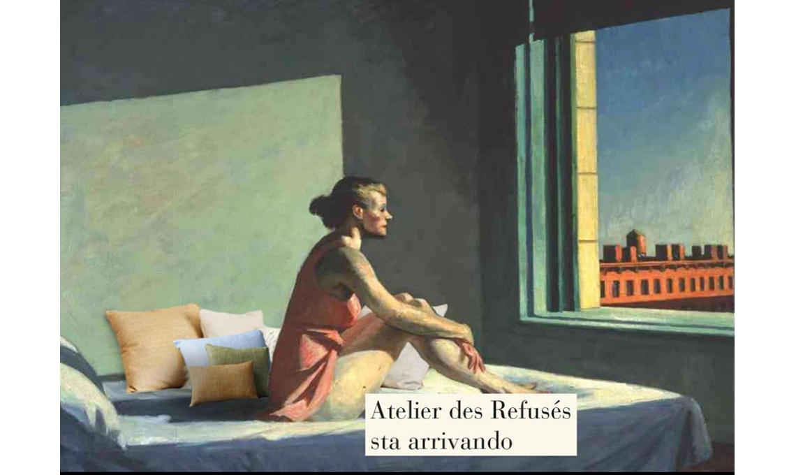 Nome: Atelier de Refusés. Origine: il Salon des Refusés di Napoleone III che segna l’inizio del movimento Impressionista. Cosa fa: cuscini decorativi, pezzi unici per disegno, forma e dimensione. Come: con tessuti inutilizzati, in sinergia con le migliori aziende di home textile. Obiettivo: economia circolare, per le case e per il pianeta.