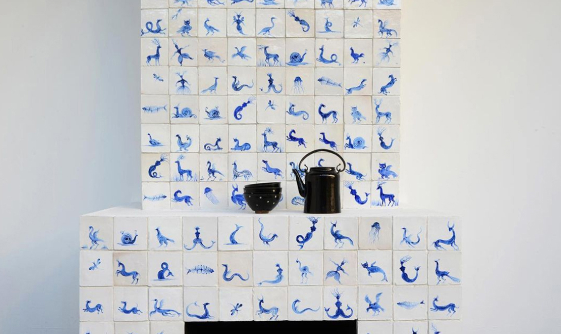 Liberamente ispirate alle arcinote piastrelle di Delft, di quelle originali conservano solo il bianco e blu. Mentre i soggetti, dipinti a mano, sono creature immaginate dalla fantasia di Agnès Emery.