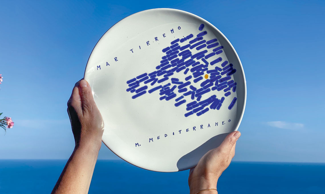 Ispirato all’opera di Emilio Isgrò ‘Mari di Sicilia’: il puntino giallo è Gibellina, rasa al suolo dopo il terremoto del 1968… e i trattini blu sono le città cancellate della Sicilia occidentale. artensis.eu