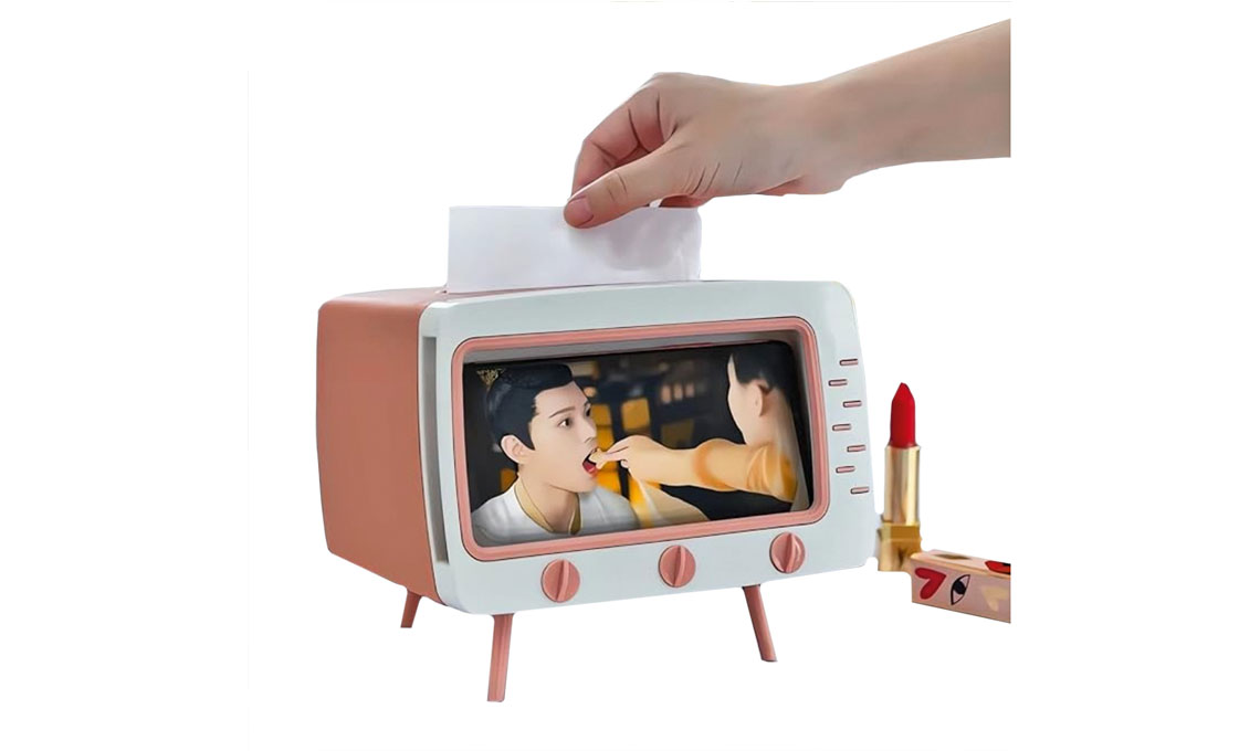 Per la serie ‘oggetti di cui (non) sapevamo di aver bisogno’, ecco la mini tivù da tavolo (con porta fazzoletti annesso) in cui inserire il cellulare per vedere le vostre fiction preferite. Su amazon.it