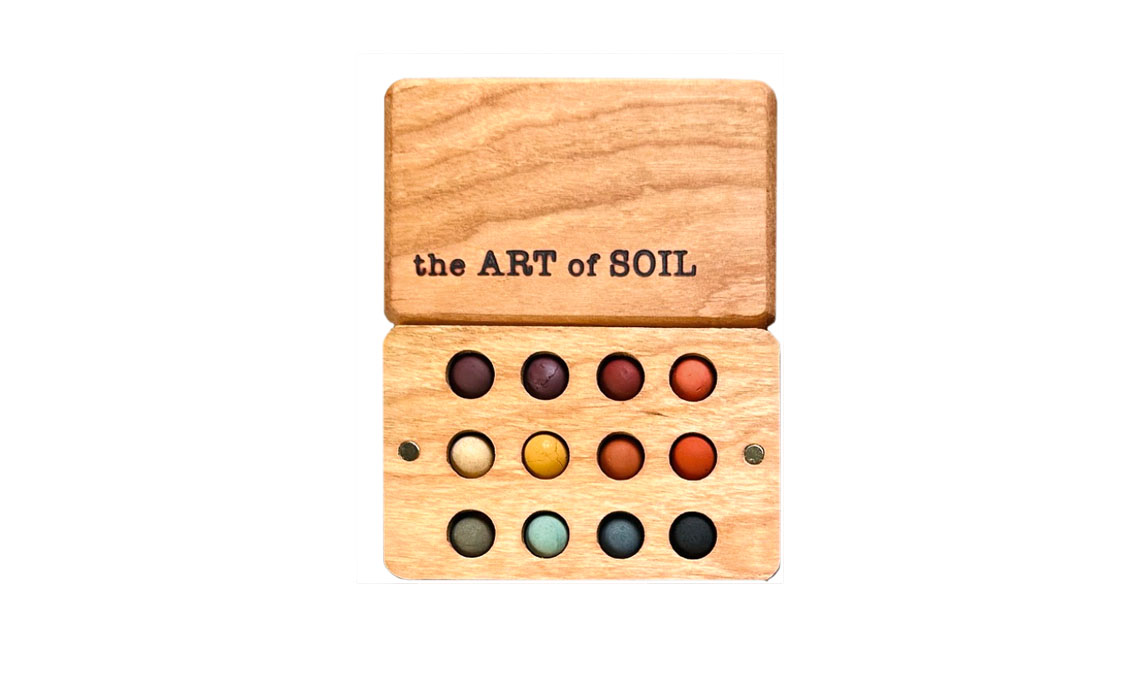 Questi acquerelli sono fatti di pigmenti ricavati da differenti terre, quindi naturali e atossici. Disponibili anche in kit da viaggio, come qui, sono incastrati su una base in legno di noce o di ciliegio con chiusura magnetica. @theartofsoil