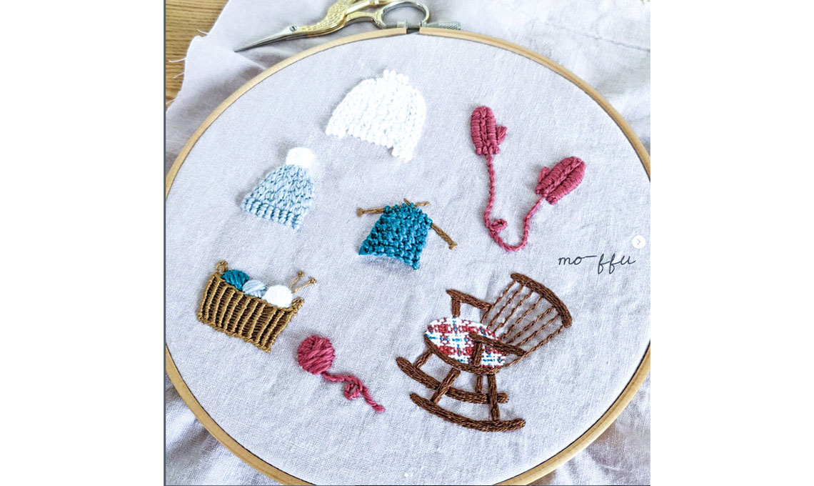 E se invece che con carta e penna prendessimo appunti su tela, con ago e fili colorati? Qui c’è un racconto d’inverno. Una nonna seduta su una vecchia sedia a dondolo a sferruzzare per i nipotini: maglione bianco per la bambina più grande, berretto e guanti per i piccoli. Quanta poesia... @mo_ffu