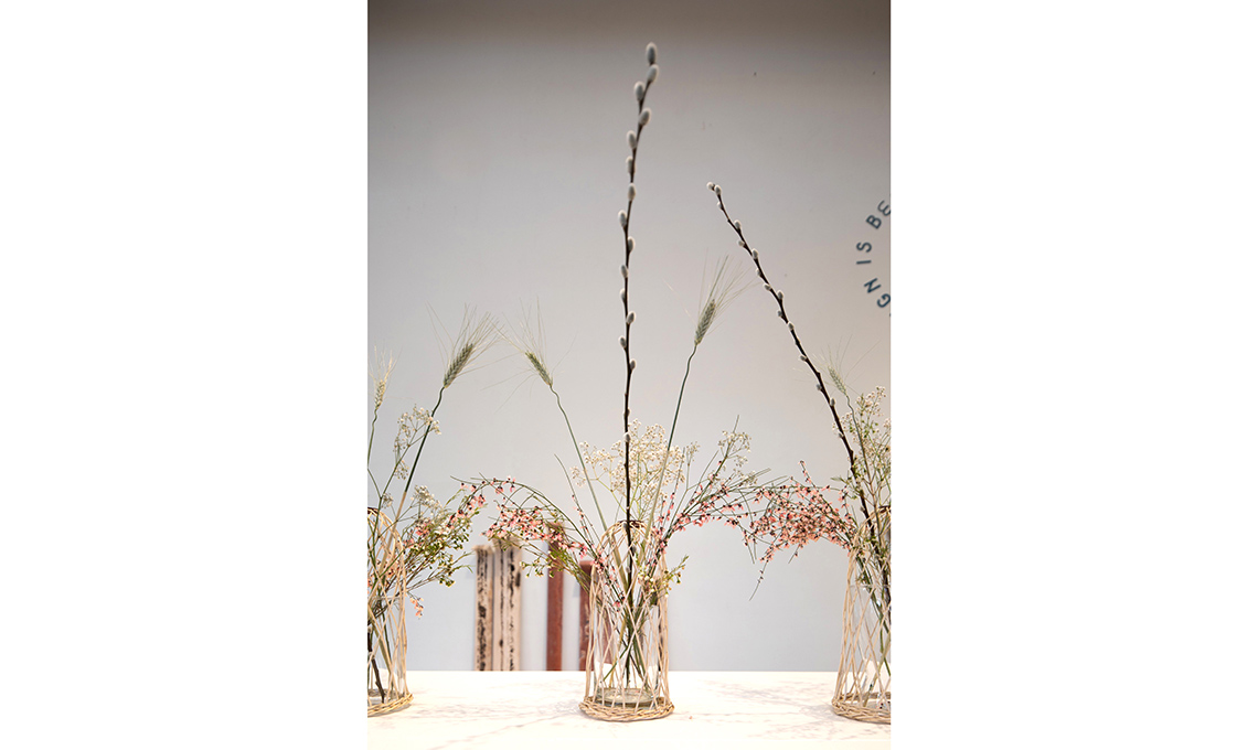 ‘Pique fleurs’ di Roel Vandebeek è una delicata struttura di vimini verde (tipico della regione del Limburgo, in Belgio). Dentro, un semplice vaso di vetro. L’idea? Inventarsi un tema floreale diverso ogni giorno.