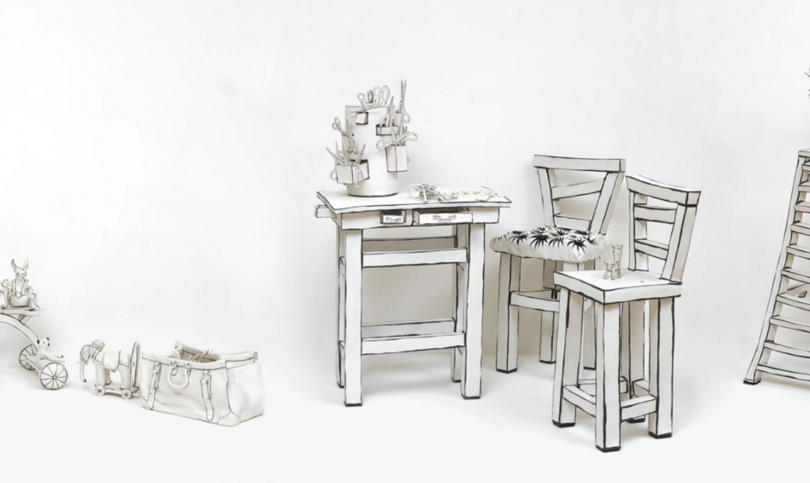 Come disegni in bianconero che si animano in 3D. Katharine Morling, artista pluripremiata, fa un uso insolito della ceramica e nella sua gallery, con la stessa tecnica, trovi pezzi inattesi, dalla sega alla radio, alla carta da lettere...