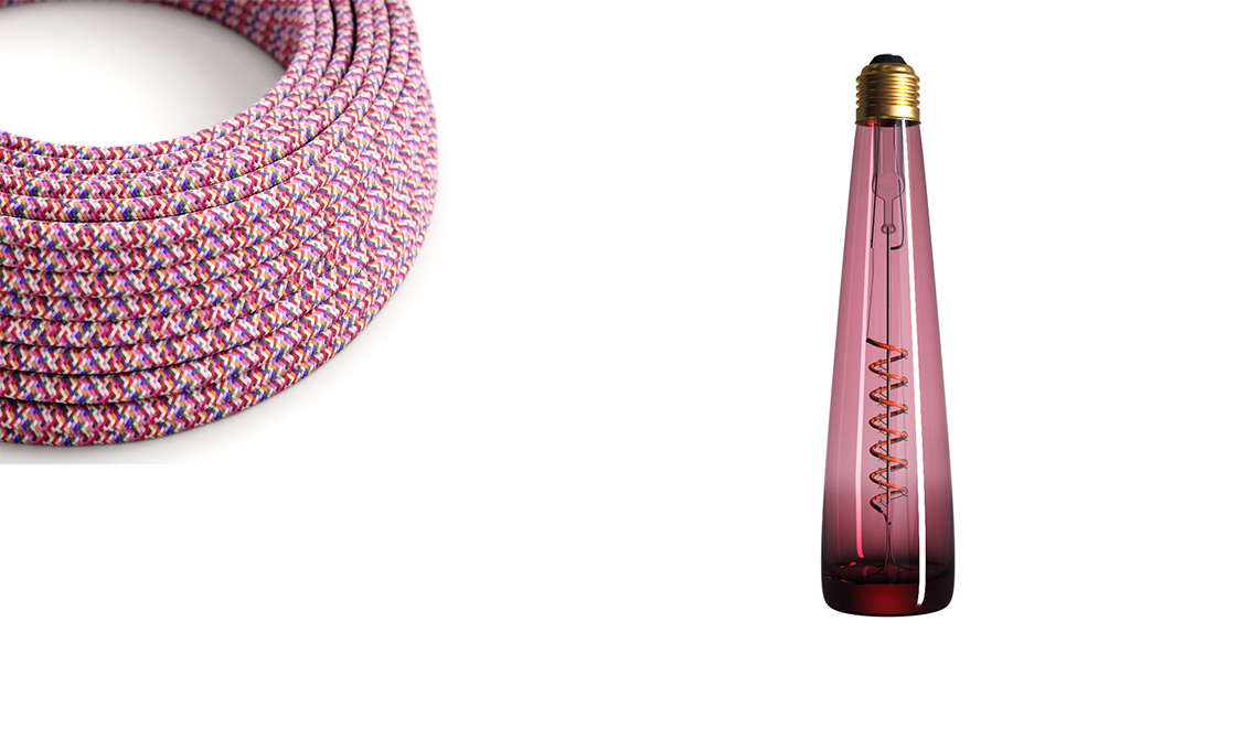 Un cavo (150 colori), poi il portalampada, rosone o paralume (di ogni forma, materiale e misure), la lampadina, per oltre 20mila combinazioni. In 6 flagship store e nello shop online.