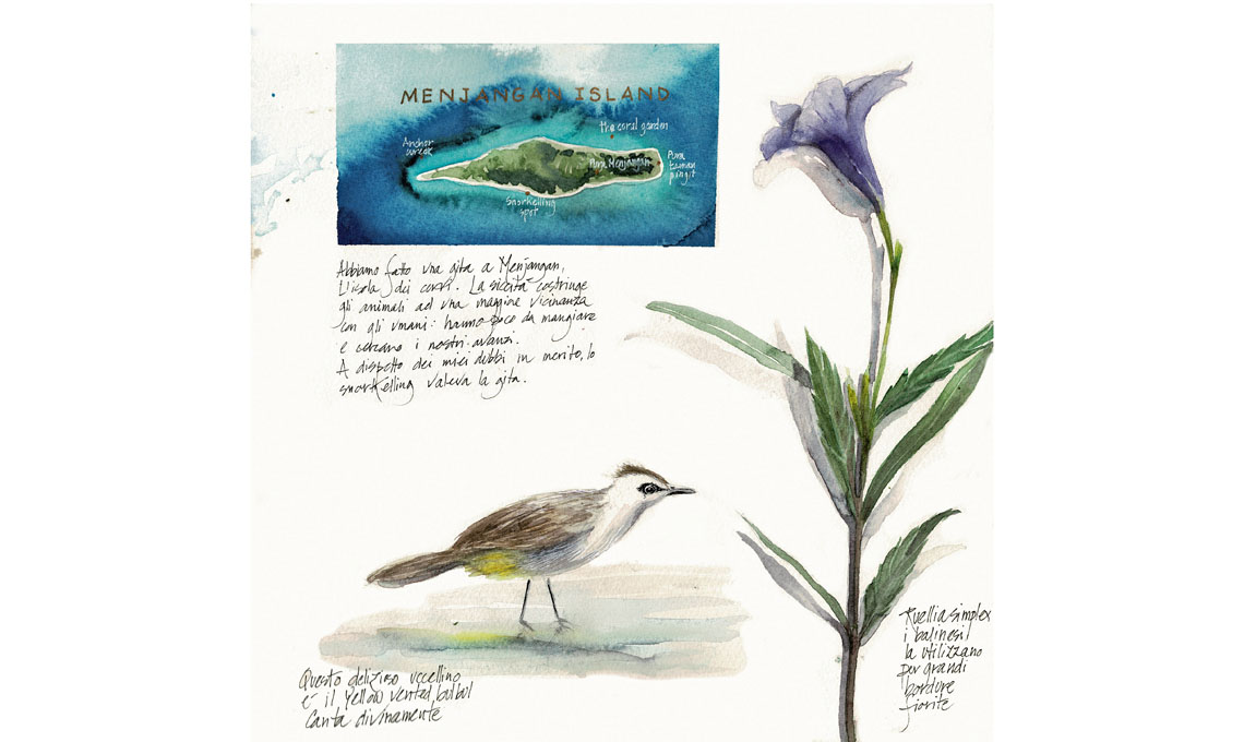taccuini di viaggio. Con la sua fine attenzione e il suo pennello acquarellato, prende nota rubando dettagli della vita che la circonda.