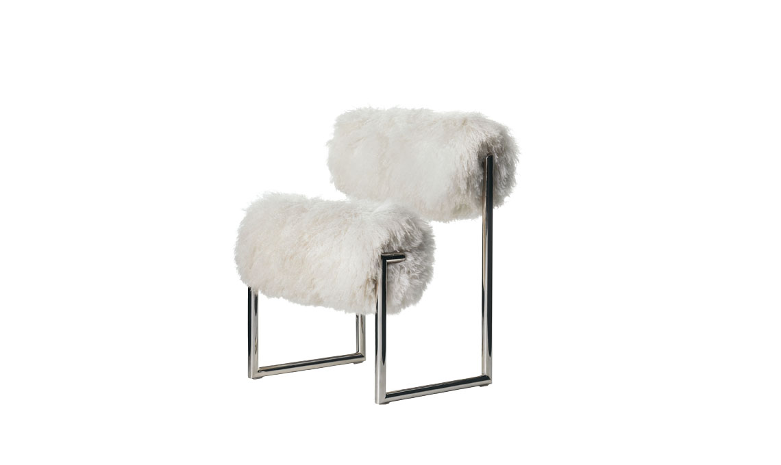 Linee morbide per lo sgabello su tre gambe Bifant interamente rivestito in poliestere effetto pelliccia [Ellos Home su » westwing.it, ø cm 61x43h]
