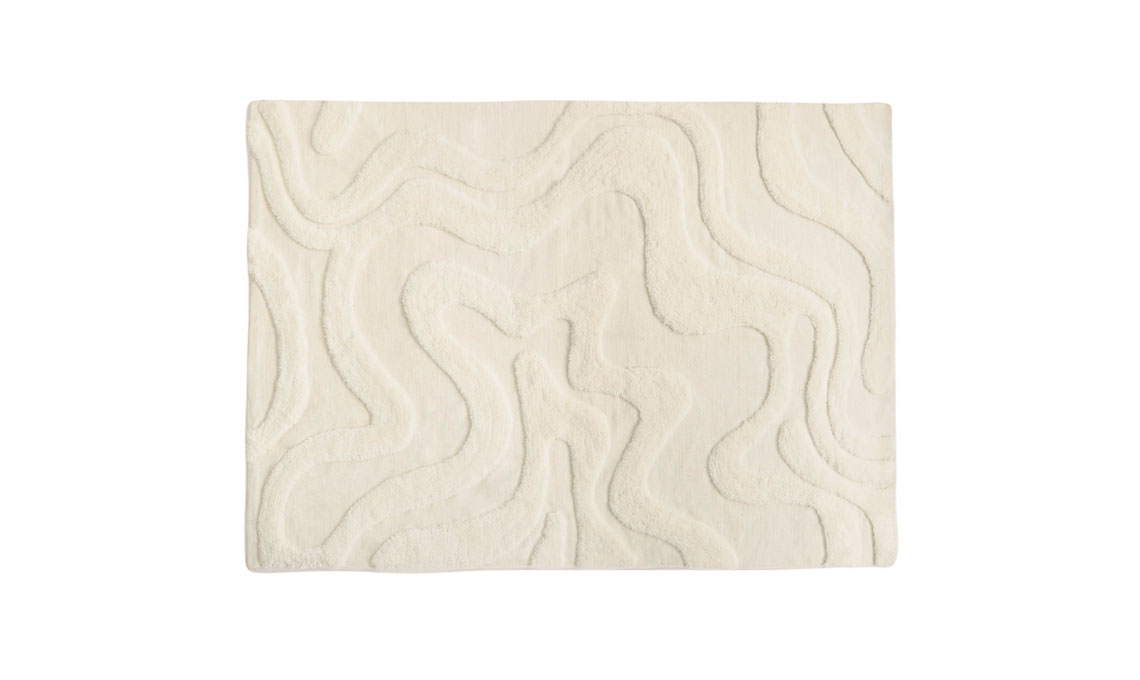 Disponibile su misura e in ogni forma il tappeto taftato a mano Feather, in pura lana bouclé e lino con profilo lavorato [Kasthall]