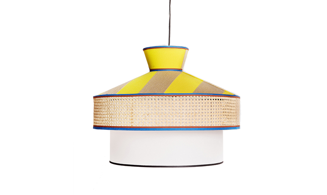 La natura è rappresentata con una grafica delicata sui piatti in porcellana A Walk in the Garden di Hermès. Sartoriale in tessuto Kvadrat con inserti di paglia il lampadario Wagasa by Servomuto di Gebrüder Thonet Vienna. Un pezzo Anni’50 il tavolino Palmier in rattan con portariviste di Rien à Cirer. Artistico il vaso in ceramica Mrs. Meyer di Kitsch Kitchen. In frassino massello e corda nautica intrecciata la poltrona Sitar di Saba Italia. Con piano a vite regolabile in altezza il tavolino Basalto in acciaio laccato e piano in frassino di Bontempi Casa. L’iconica lampada Atollo di Vico Magistretti in veste gold di Oluce. Per finire tessuto Nahli Sunflower di Romo.