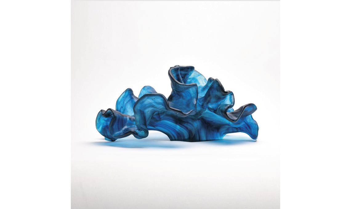 _Monette Larsen plasma sculture di vetro nate da forme realizzate all’uncinetto, e la tessitura è una parte importante del suo processo creativo.
