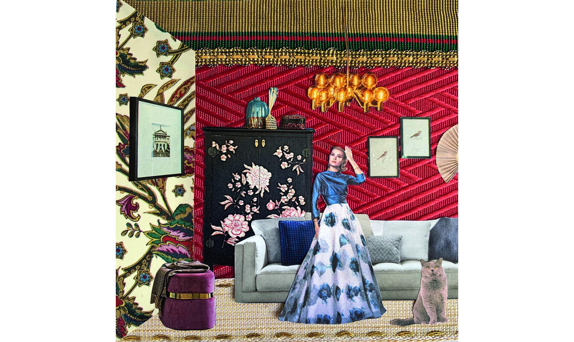 _Anna Savini crea collage anche su commissione in cui rappresenta interni di case. Utilizza materiale di recupero come stoffe, nastri, passamanerie che la nonna negli anni le ha regalato e ritagli di arredi da giornali come il nostro. Vediamo se riconoscete elementi CF.