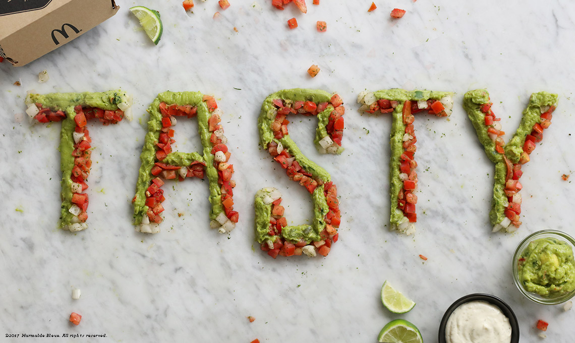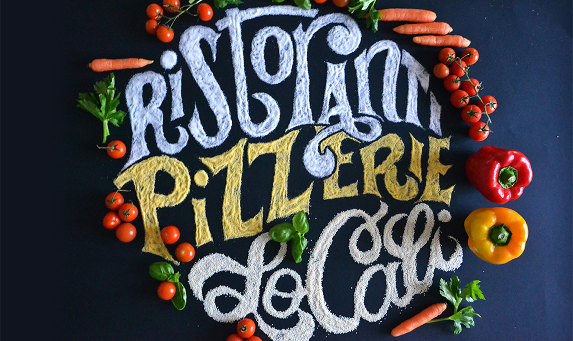 Nella Food Typography si disegnano delle frasi utilizzando il cibo al posto della matita o dell’inchiostro: ortaggi, farine, salse, spezie, chicchi… il tutto disposto su un piano di lavoro dove ingredienti e lettere si fondono insieme dando vita a claim pubblicitari, call to action, titoli di giornale, pay off.