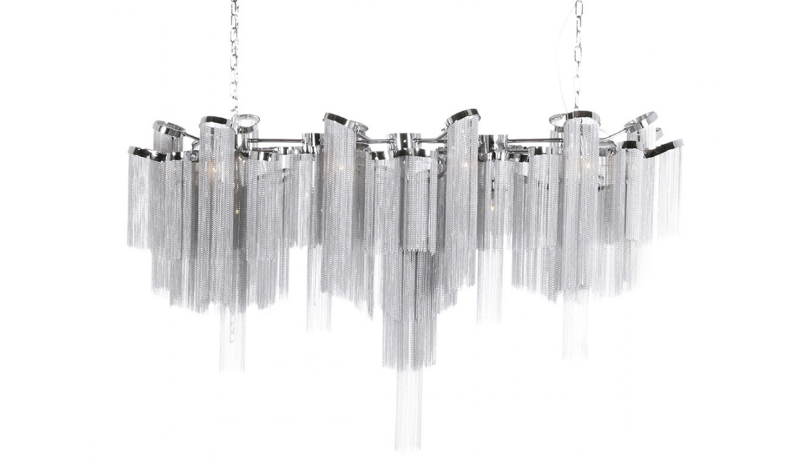 Scenografica la lampada oversize 027 in metallo verniciato e ottone brunito [Dimorestudio, cm 230x47x400h prezzo su richiesta].