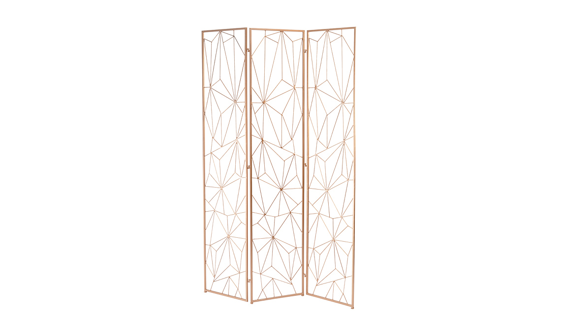 - Paravento in metallo Cupro di Artisanti ha un effetto geometrico dal gusto nordico.