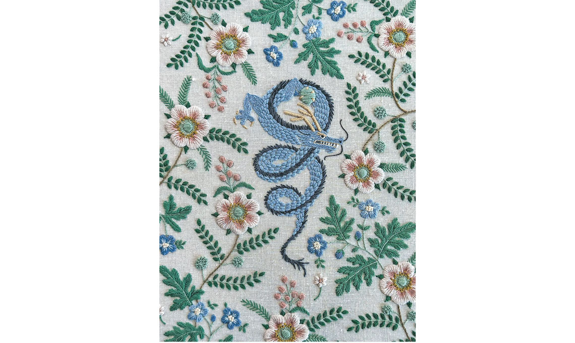 Yumiko Higuchi, artista giapponese del ricamo di fama mondiale. Qui con il dragone ricamato ci riporta alla cultura cinese, il 2024 è infatti l’anno del Drago Verde (verde perché di legno) e rappresenta la rinascita e la crescita delle piante. ‘Il ricamo nella vita quotidiana’ è il suo nuovo libro dove ispirarsi in punta d’ago, all’arte e alla cura di una vita semplice.