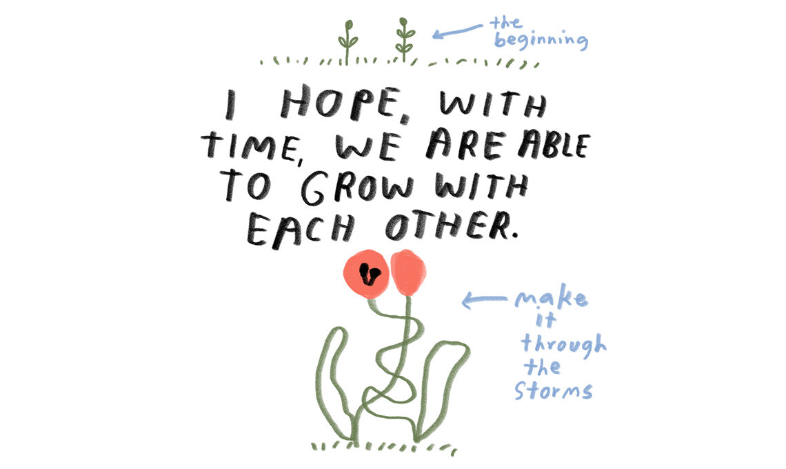- Carissa Potter Carlson ci ricorda di analizzare le ragioni per cui a volte, dopo una tempesta, ci ritroviamo più uniti di prima. «Spero che con il tempo riusciremo a crescere insieme... a farcela attraverso le tempeste» .