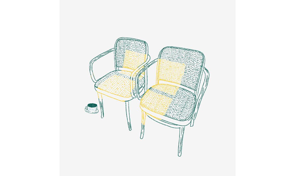 - Sono unite anche le due sedie di Izzi Lawrence: vicine e illuminate dal sole che filtra dalla finestra, ci ricordano l’altro che ci è stato accanto e ancora ci sarà. Uno stare insieme sottinteso ma non per questo meno importante.