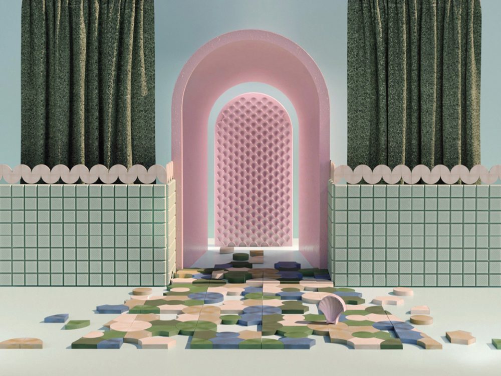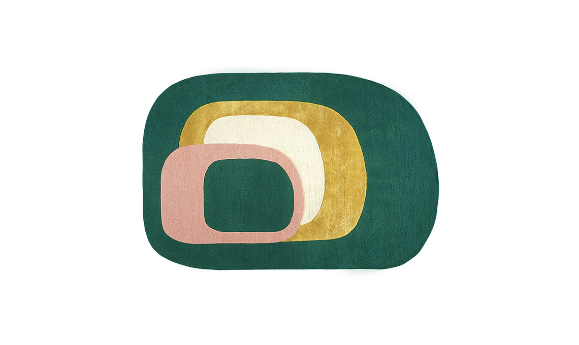 Fuoriscala: forme irregolari dai tenui colori nella tappezzeria Essentiel [Isidore Leroy € 195 il rotolo da 10 m].