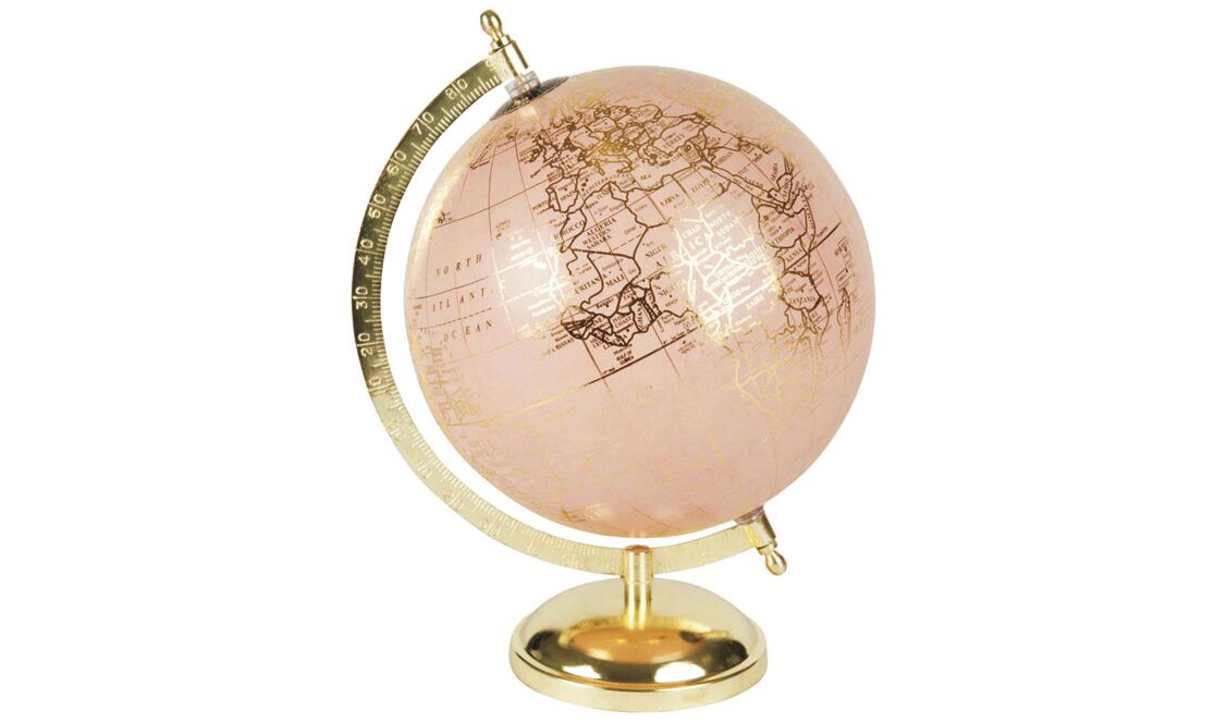 Finitura oro per il mappamondo Clemence Rosy [Maisons du Monde, cm 20x20x28h €21,99]. 5