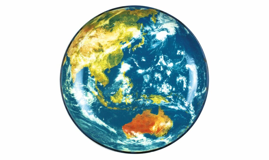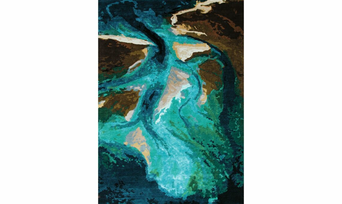 La celebre baia australiana vista dall’alto nel tappeto Shark Bay nato dalle foto di Yann Arthus-Bertrand [Roche Bobois, cm 200x300 €2.940].