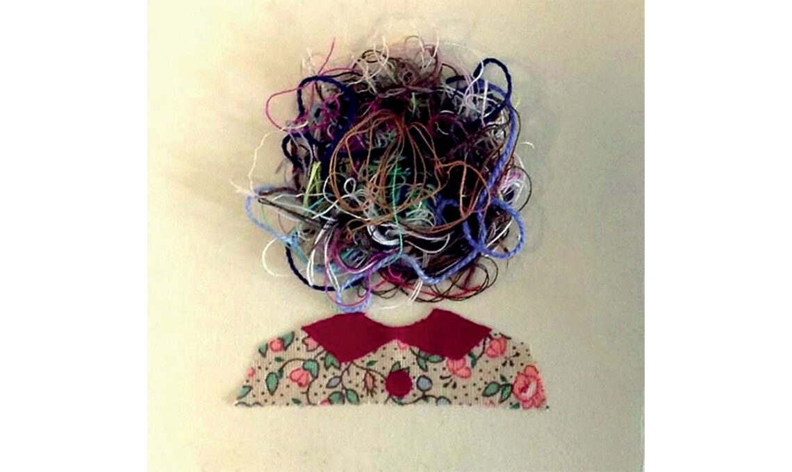 - Gisella Ciullo è una designer che sperimenta con la Fiber Art. Qui in un suo vecchio autoritratto. Il groviglio simboleggia il turbinio di idee che vorticano in una mente creativa, una matassa caotica e spesso inestricabile. La sfida è cercare di sbrogliarla ogni giorno, per tirarne fuori i fili giusti da tessere!