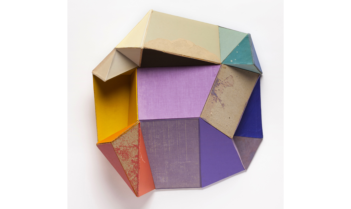 • Conny Goelz Schmitt è una artista alla ricerca di superfici materiche e colori sbiaditi. Decostruendo libri d’epoca scartati, progetta collage geometrici e sculture che ritrovano una loro nuova dimensione e perfezione. Qui ‘Purple Rain’.