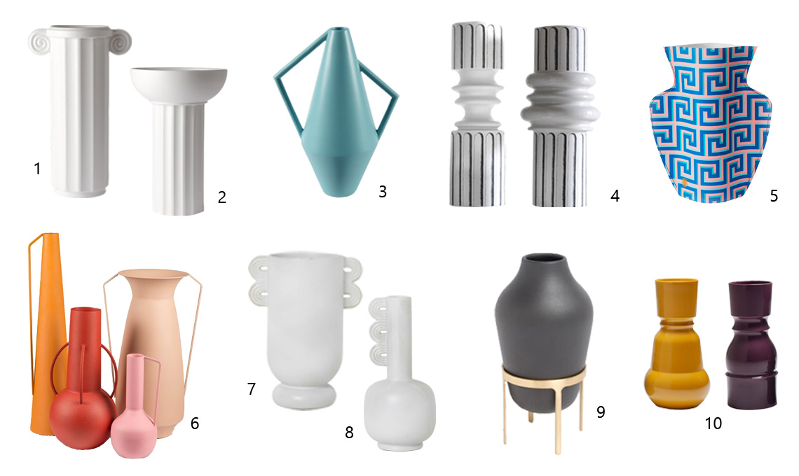 I vasi di tendenza reinterpretano l’arte antica con forme contemporanee e colori inediti. I designers trovano nuovamente ispirazione nell’arte classica richiamando le forme delle ceramiche o gli elementi architettonici come colonne e capitelli.