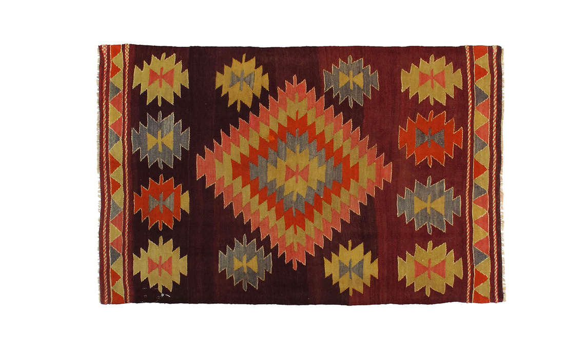 Tipico dei Balcani e dal Pakistan, il kilim (dal persiano ‘gelim’ che vuol dire distendere) si distingue dagli altri tappeti perché è senza pelo, ottenuto con una tessitura stretta di trama e ordito, spesso con fessure che sottolineano il tipico motivo geometrico. Questo tipo di tappeto si presta anche per essere appeso anche come arazzo.