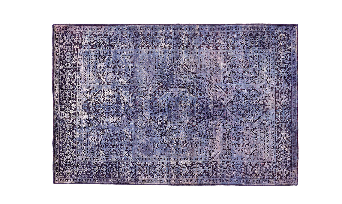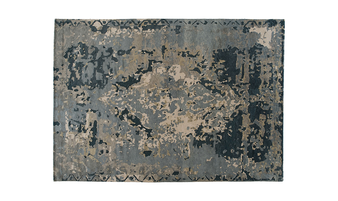 Annodato a mano, in lana e seta, il Topkaj Moon evoca l’impianto classico in chiave artistica e concettuale simulando la ’corrosione’ causata dalle intemperie e dal tempo [Golran, prezzo su richiesta].