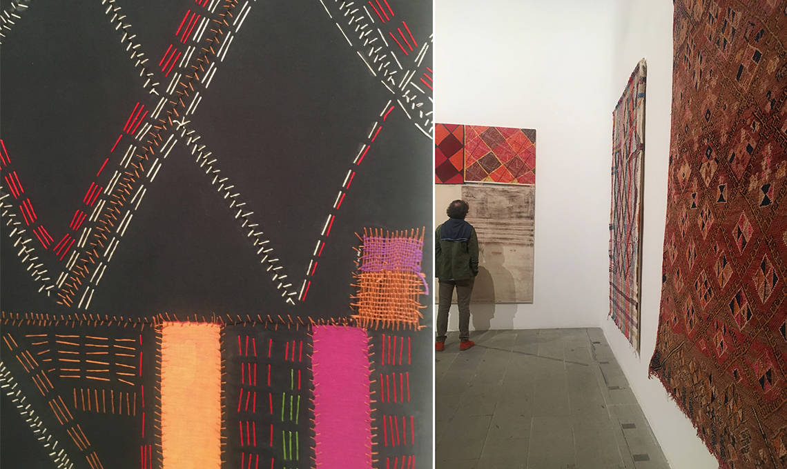 Per Teresa Lanceta, artista catalana, intrecciare tappeti è un esercizio di confronto fra culture: i grafismi dei ‘rug’ marocchini si smontano e ricompongono in chiave moderna. (‘Adios al rombo’, Biennale d’Arte, Venezia » teresalanceta.com) Foto Marco Tazzi.