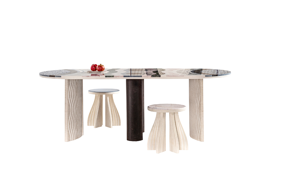 I materiali naturali sono contaminati dal colore e da innesti inaspettati. Segni grafici netti e minimi sul prodotto. Il progetto torna al centro e definisce i nuovi confini abitativi.