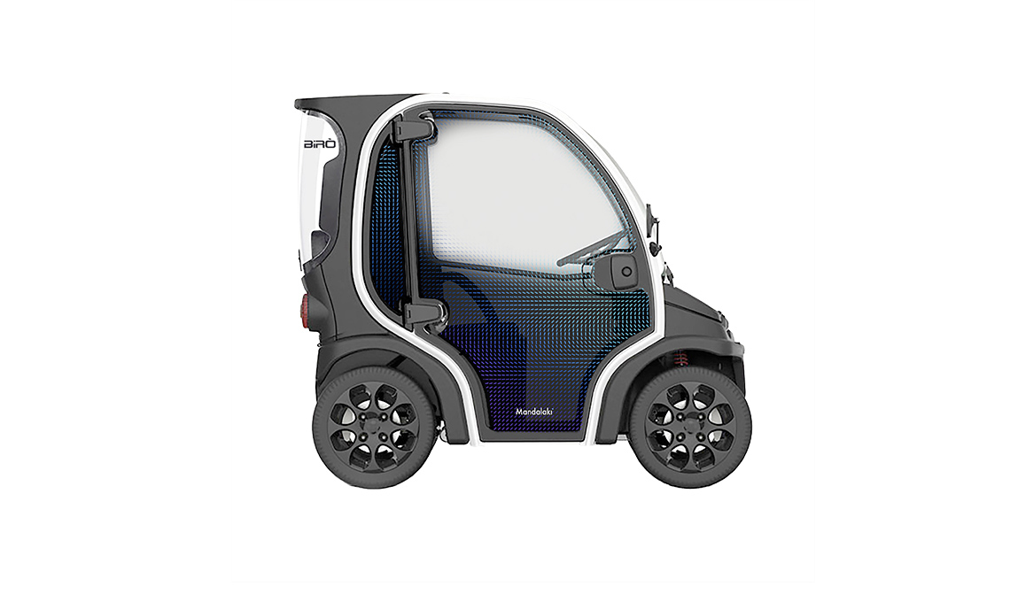 È fatta all’80% di plastica riciclata Birò O2, la ‘concept car’ elettrica messa a punto da Estrima e Mandalaki Studio, con la Galleria Rossana Orlandi di Milano.