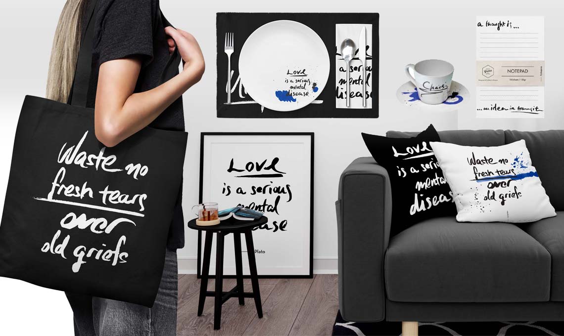 Borse e zainetti, ad esempio, sono in tela di cotone proveniente dalla Tessaglia; portachiavi, travel journal, portadocumenti e porta passaporto sono in autentica pelle conciata al vegetale originaria della Creta. Il loro catalogo comprende diverse collezioni: The Quotes Collection vanta numerosi pezzi per la cucina come tovagliette, mug e piatti in ceramica decorati con frasi ispirazionali; Landmark Collection presenta cartoline, shopping bag, notebook, t-shirt e puzzle creati con le illustrazioni dei famosi elementi architettonici del mondo antico. Greek Symbols Collection, invece, celebra con un approccio minimale l’antica Grecia attraverso la stampa dei simboli e dei numeri attici su piatti, strofinacci, bavaglini, cuscini, body per neonati e pochette.