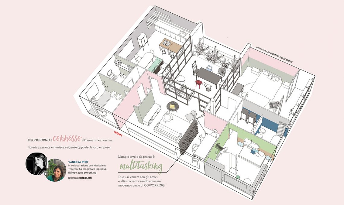Nella casa dei 20 anni di CasaFacile il soggiorno è uno spazio connesso che unisce relax e lavoro
