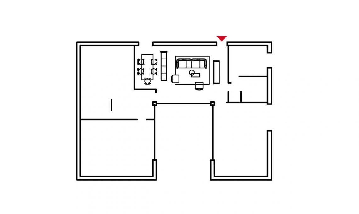 Con una profondità di 40 cm, la libreria passante ‘serve’ entrambe le parti del soggiorno e crea un gioco di vedo-non-vedo che allarga la prospettiva da ciascun lato.