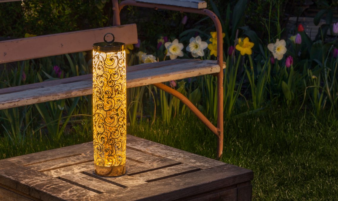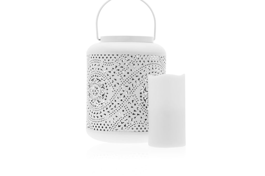 Romantica, Solvinden è in acciaio traforato old style. Funziona per 12h, grazie alla batteria a ricarica solare. Esiste anche bianca [Ikea, cm 30h €15,99].