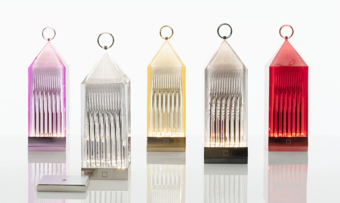 Diffonde un pattern di luce grazie al design della superficie. Lantern è in materiale plastico, con base di ricarica [è un prototipo di Kartell in prossima produzione].