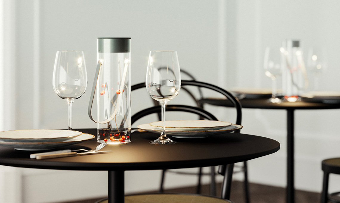 Inizio presentandovi la romantica Chiardiluna disegnata da Dante Donegani e Giovanni Lauda per Rotaliana: una minimale lanterna contemporanea in vetro soffiato trasparente. La sorgente led che risiede nella parte superiore diffonde una delicata luce indiretta illuminando il piano sulla quale viene appoggiata. All’interno del vetro è possibile inserire un piccolo oggetto personale per valorizzarlo, oppure scegliere un segnaposto in vetro soffiato di Murano tra quelli proposti. Tramite il dimmer a sfioro la luce può essere alzata o abbassata a seconda delle necessità. Utilizzabile negli interni come negli spazi esterni, è dotata di una base per la ricarica wireless.