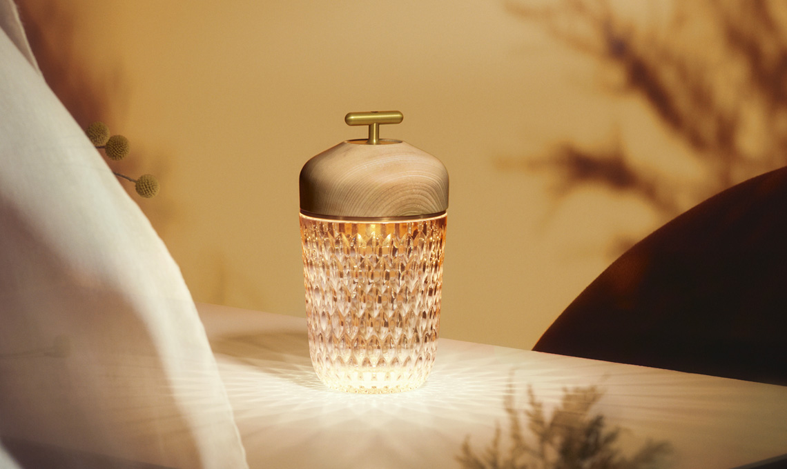 La baladeuse Folia è un’elegante lampada nomade, disegnata da Noé Duchaufour-Lawrance per Saint-Louis. Un condensato di tecnologia al servizio del cristallo che senza il vincolo del cavo elettrico contiene una luce a LED autonoma. Può essere utilizzata sia in interni sia all’esterno. Il cristallo è lavorato a tagli obliqui a “ugnatura” disposti a scala che creano un motivo geometrico che la luce interna demoltiplica e proietta creando sorprendenti effetti luminosi.