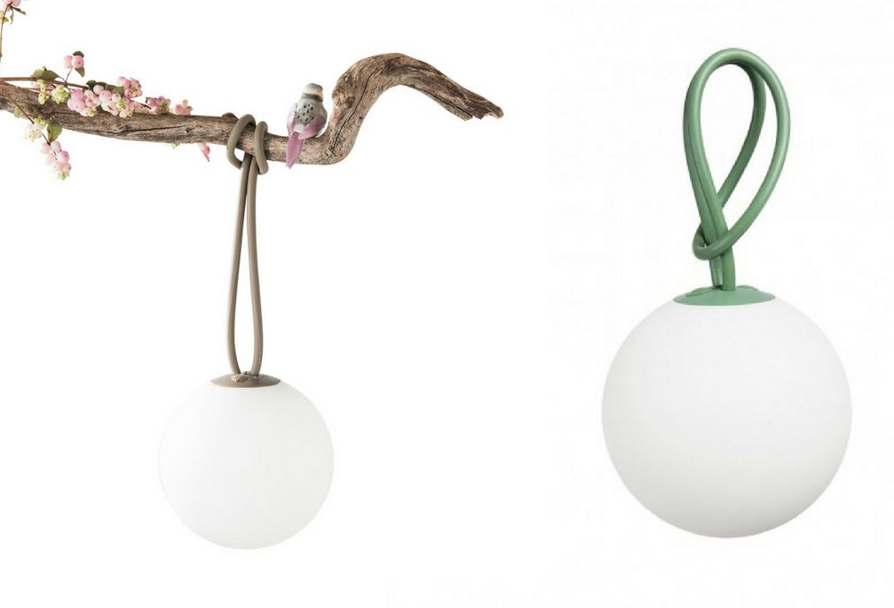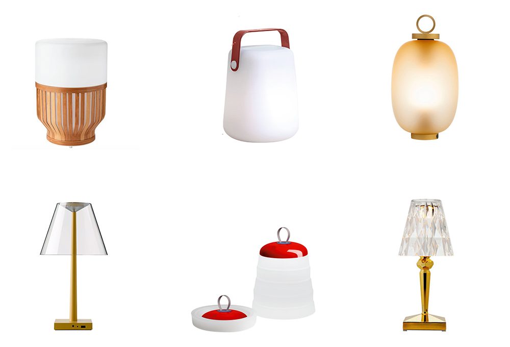 Ispirata alle lanterne cinesi, Kiki Cordless ha maniglie di 4 colori diversi. Per outdoor (IP65). Autonomia 5h. 1W [Martinelli Luce, ø cm 14,5x16h da € 154,94].