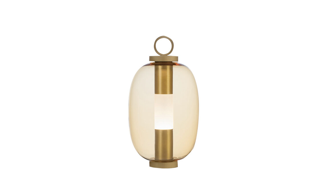 Lucerna, impermeabile: diffusore in vetro soffiato fumé, grigio antracite o ambra; in acciaio spazzolato o ottone. Autonomia 8h. 6W [Ethimo, ø cm 19x34h da € 490].