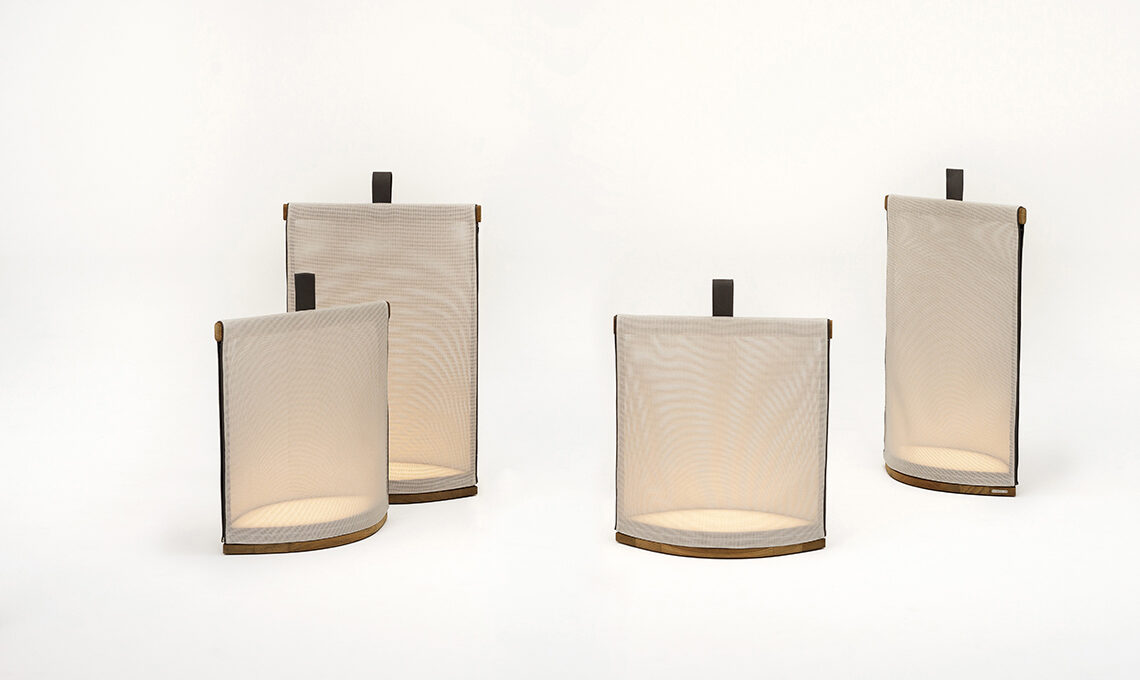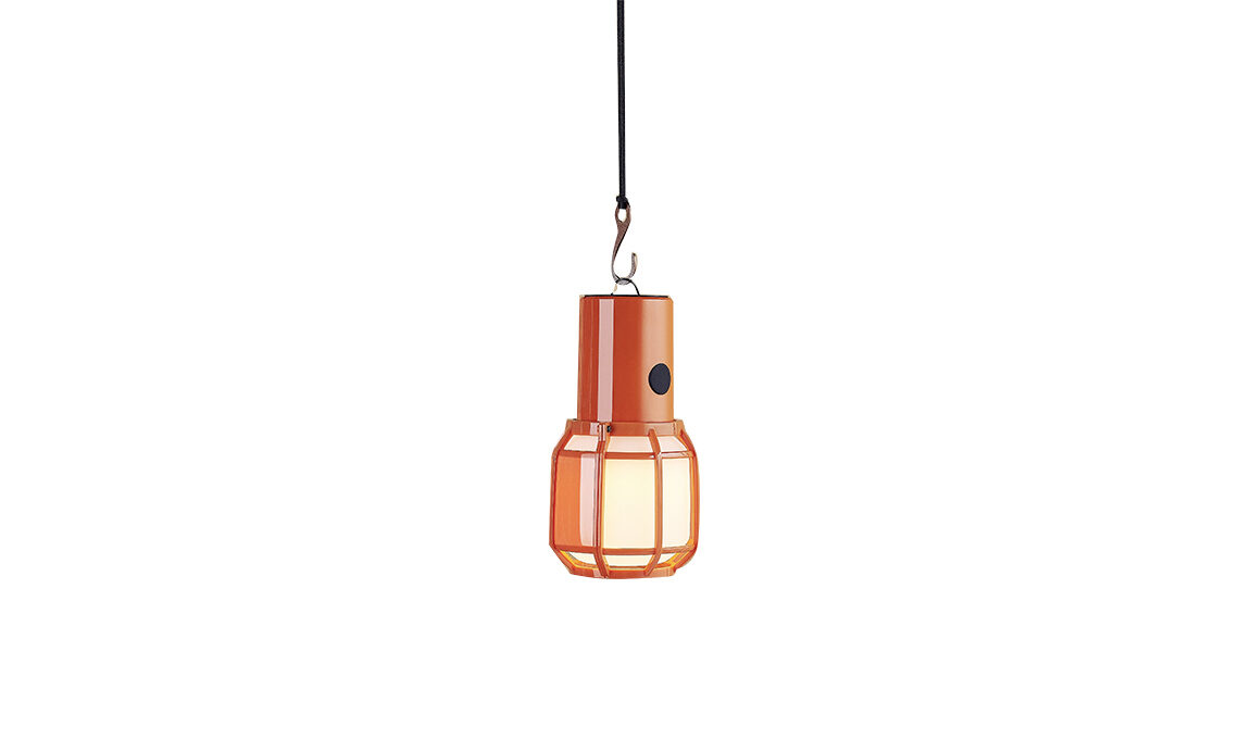 In metallo e polietilene, Circ resiste alla pioggia (IP67). Dimmerabile, 6h di autonomia alla massima potenza. 2,5W [Estiluz, cm 22,4x37h € 386,74].