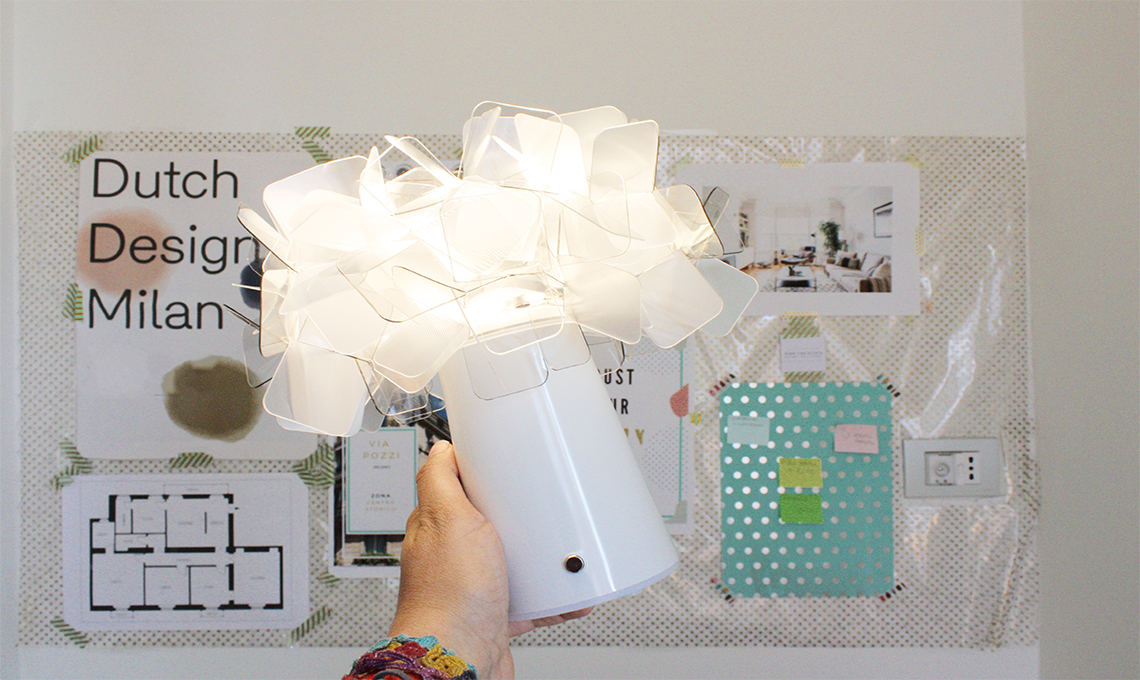 Disegnata da Adriano Rachele, Clizia è una lampada senza fili interamente costruita a mano in Italia. Le sue forme e la sua leggerezza ricordano un meraviglioso bouquet di fiori. Grazie alla tecnologia a batteria ricaricabile posso spostarla da una stanza all’altra, su qualsiasi ripiano o superficie della casa, senza dovermi preoccupare della posizione delle prese elettriche.