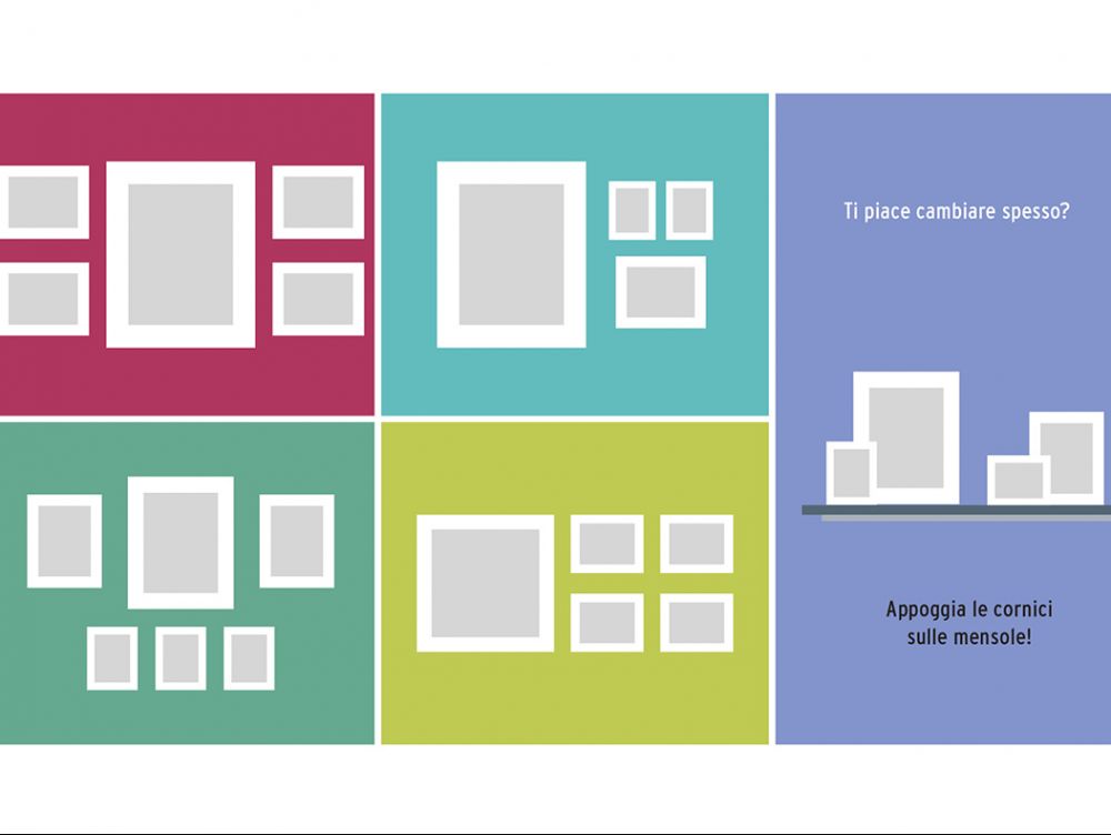 puoi usare Palco Low Voltage, un piccolo proiettore orientabile montato su un binario. Se in futuro appenderai altri quadri, potrai aggiungere altri proiettori sullo stesso binario. Se hai più quadri e vuoi illuminare l’intera parete, ti serve un ‘wall washer’ che distribuisce la luce in modo omogeneo su tutta la superficie verticale [Sistema Palco di iGuzzini, da €234]. - SE HAI UN PUNTO LUCE A PARETE puoi installare binari modulari a bassissima tensione (completi anche di sostegni per appendere i quadri) sui quali le luci possono essere montate in qualsiasi posizione. Il sistema è già pensato in modo che la sorgente luminosa sia collocata con un angolo di incidenza di circa 30° che evita riflessi sul vetro della cornice [Sistema LightLight® Wall-Poster B15 di Flos, a partire da €192].