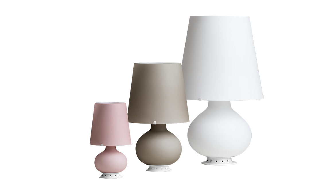 varianti: bianca... quella più classica è bianca opalina. Poi c’è quella nera, cui oggi si affiancano le nuove grigio chiaro e viola ametista. 3 le misure: ø cm 20x34h; ø cm 32x53h; ø cm 47x78h (soltanto nera e bianca).